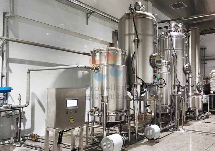 普瑞普勒采用二效逆流蒸發(fā)濃縮方式,間歇化生產,滿足后續(xù)糖漿 使用不堆積,總蒸發(fā)水量2t/h。半自動控制,能完成MCS控制、安全監(jiān) 控、報警等,確保裝置安全高效穩(wěn)定運行。
